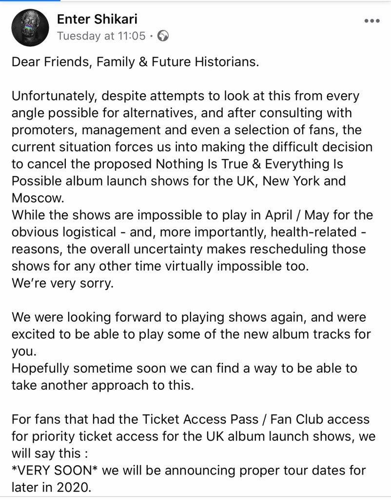 And so, for these music venues, they are desperate as ever to stay alive for as long as possible. Of course, with a restaurant you can still stay in business I guess, via takeaway outlets and such. But music venues? It’s not so easy.