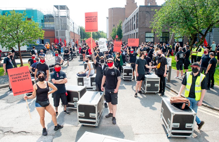 2,000 industry workers – who have been out of work since the beginning of March – from the arts and entertainment industry showed their under-dying and touching support by holding silent march protests for The Red Alert Movement and #WeMakeEvents campaign to truly showcase how imperative and important we are as individuals, to an industry that amasses such importance to the economy each year.