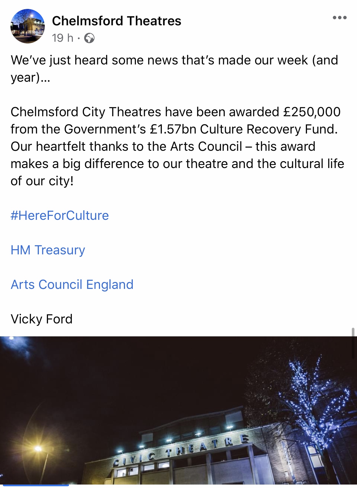This funding will not only save the beating heart of cultural communities across the UK but revitalise those once lost by allowing performances to restart, venue to plan for reopening to help protect jobs and to create avid opportunities for freelancers.