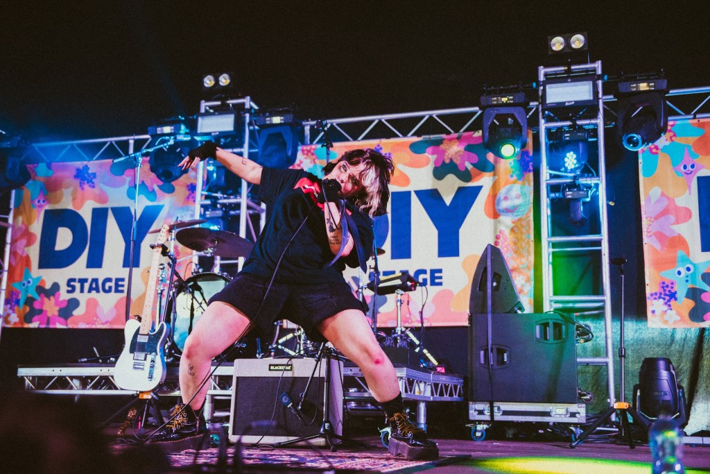 We were also awarded with alternative magazine Dork sponsoring a dual-stage; a publication who is always down with boring. A quirky dynamic to say the least, both left and right featured some of the bands, artists, collectives, acts that you certainly need to be “in the know” about right now. A delivery of the best alternative, as Youth Sector tipped their fedoras to the funky drillings of perplexing indie-pop, while the outfits of Enola Gay and deranged Madness-esque Opus Kink fronted sprouting seeds to the future of punk. More surveyors plotting their course for punk domination was the off-kilter female-front of Panic Shack who performed on the right stage; and immediately accepted the mantle of stage headliner with both hands, firm and taut. Their explosive noise, witty lyrics and abrasive mannerisms chartered a performance that was not so easy to forget. It’s safe to say that this Welsh punk quintet – an outright insane variation to safe indies’ Wet Leg – are proving that DIY simply does it better.